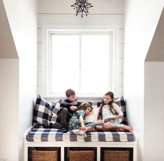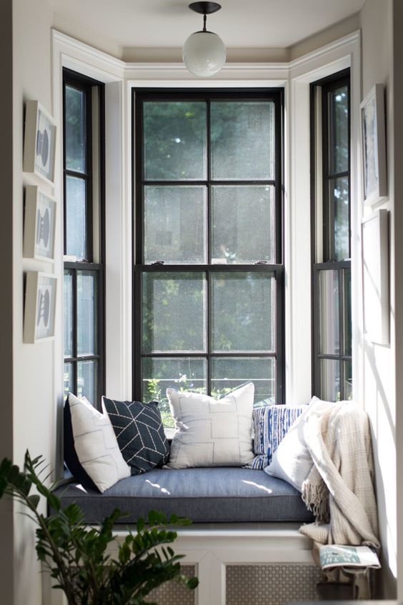 Squabs are ideal for making a cosy window seat destination in your home. A place to sit awhile and read, or relax and gaze out at the garden. They provide versatile extra seating as well as handy storage, they ooze comfort and they add character to a room. Bay windows offer the ideal space for a window seat, perfect depth, nice and bright with all that natural light. We suggest adding a simple Rollershade or Timber Shutter to the window, helping to cut down on that glare while you’re trying to read.