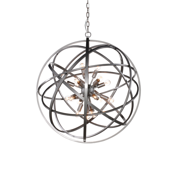 The Nest Pendant is inspired by nineteenth century experimental physicist Leon Foucault’s gyroscope; a device used for measuring orientation. Extracting key elements from the historical instrument such as its multiple axes, the gyroscope has been reinterpreted into a framework of aged metal spheres fixed around a nucleus of candle lights.